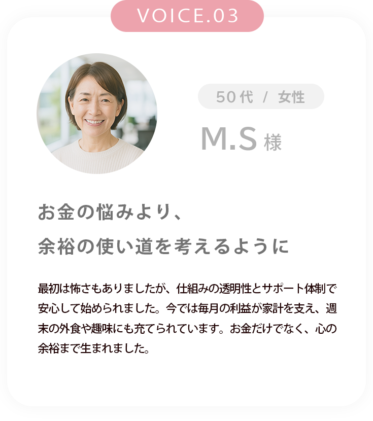 その不安こそ、始める方のほとんどが感じていたことです。ですが、実際に始めてみると「もっと早く知りたかった」という声が多いのも事実。まずは情報を受け取ってみてください。
